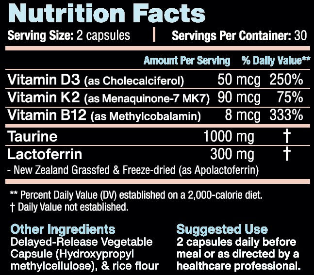 99.99% Lactose-Free. We're the ONLY autoimmune supplement brand using the highest quality Freeze Dried (Never Spray Dried) Lactoferrin from New Zealand Grass Fed Cattle and... put our formula in a patented delayed release capsule.