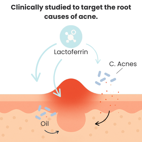 Just clinically studied Lactoferrin that helps clear acne and calm redness — from the inside out.